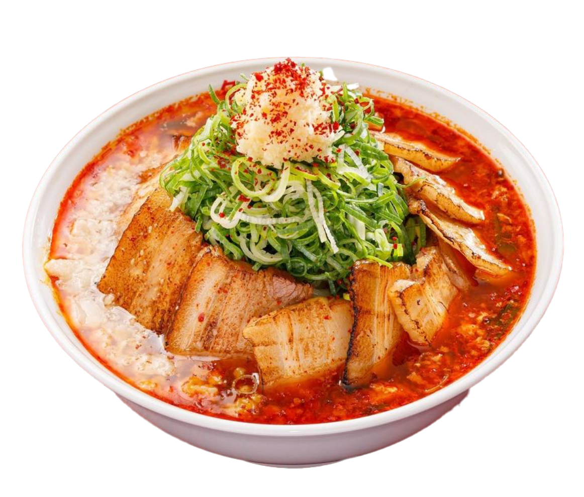 新山直人氏監修! スープはたっぷりの豚、鶏、野菜を強火で長時間煮込み、程よく乳化した甘味のあるスープ♪ 唐辛子は辛味、甘味、香味の3種類の唐辛子をブレンドし、本当の唐辛子の美味しさを提供致します。